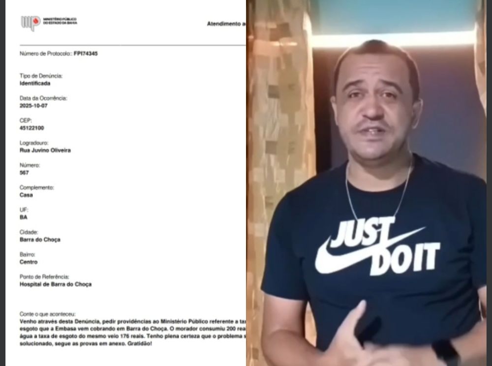 A cobrança da taxa de esgoto pela Embasa em Barra do Choça tem gerado preocupação entre os consumidores, que apontam valores considerados excessivos em relação ao serviço prestado, de R$ 176 reais. Diante disso, o morador Lula Costa protocolou uma denúncia junto ao Ministério Público Estadual, solicitando apuração sobre a legalidade dos valores praticados pela concessionária.