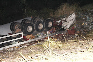Na tarde de domingo (14), por volta das 13h20, uma carreta carregada de ovos tombou na BR-101, nas imediações sapucaieira em Eunápolis.