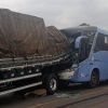 Acidente envolvendo ônibus e caminhão em local com protesto deixa 9 feridos