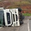 Urgente: Carreta tomba e por pouco não cai em abismo