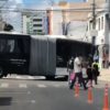 Conquista: 'Ônibus sanfonado' bate em poste no centro da cidade; assista o vídeo
