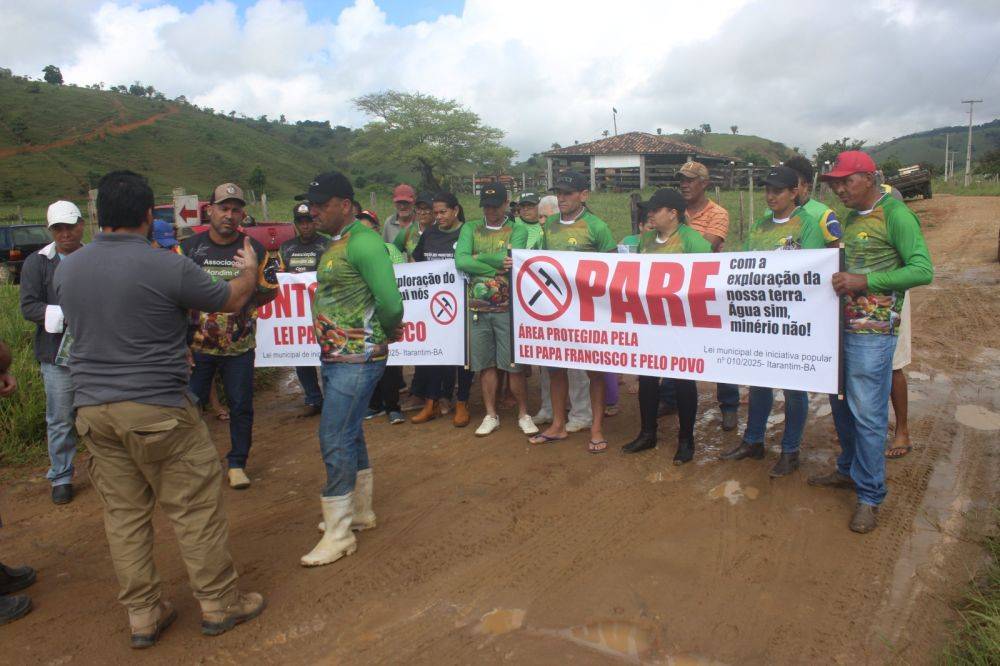 Moradores das comunidades de Córgão e Palmeiras, na zona rural de Itarantim, no sudoeste da Bahia, paralisaram hoje (6/04) as atividades de uma empresa de pesquisa mineral que atuava em seu território. A ação foi organizada após o descumprimento da lei de iniciativa popular aprovada em agosto de 2025, que protege as serras, nascentes e áreas ambientais sensíveis do município, conquistada pelas próprias comunidades após um amplo processo de mobilização.