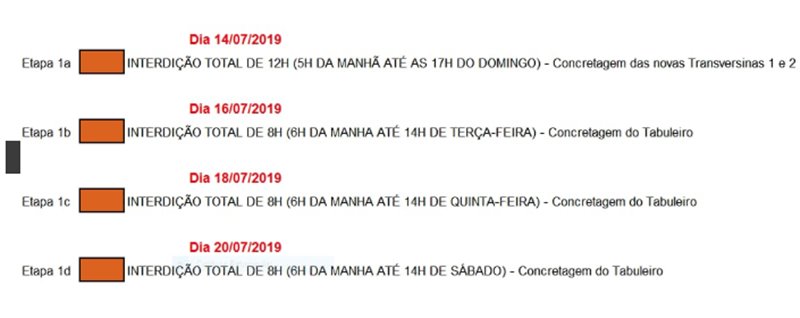 Segue abaixo programação de interrupção total do tráfego da Ponte sobre o Rio Jequitinhonha, localizada no Km 648,7 da Rodovia BR-101/BA, município de Itapebi/BA, no extremo sul baiano, visando a execução da Primeira Etapa dos serviços de recuperação estrutural.