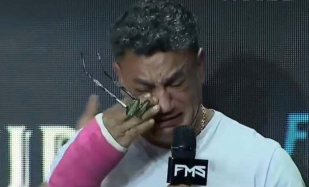 “Vocês não têm ideia de como foi vergonhoso pra mim passar pelo que eu passei em cima daquele ringue, substituir alguém para o evento acontecer. Não pelo dinheiro, não preciso do dinheiro. E passar por aquela humilhação de o cara subir em cima do ringue e me dar tanto soco. Isso para mim foi uma das piores humilhações que tive na minha vida como lutador, e esse é um dos motivos de eu parar aqui hoje e falar para mama, para falar para todo o Brasil: a minha vergonha foi tão grande que hoje eu paro de lutar, não quero mais saber de boxe”, disse o atleta visivelmente abalado.